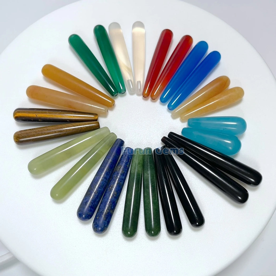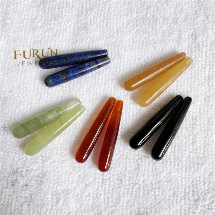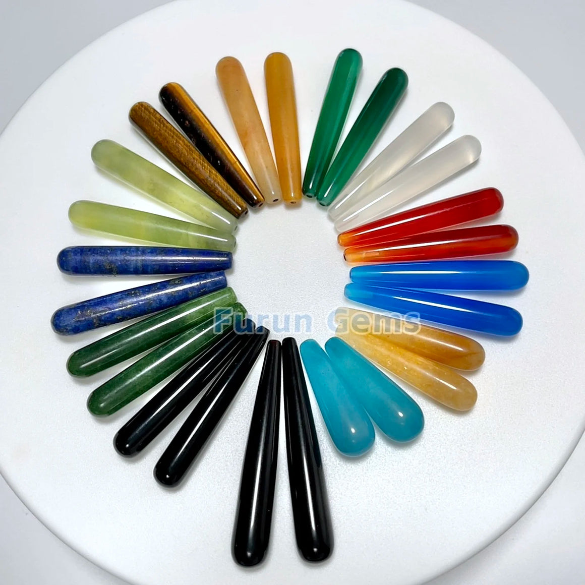 Natural stone teardrop earring accessories semi-precious stone crystal agate round water drop with half hole jewelry beads