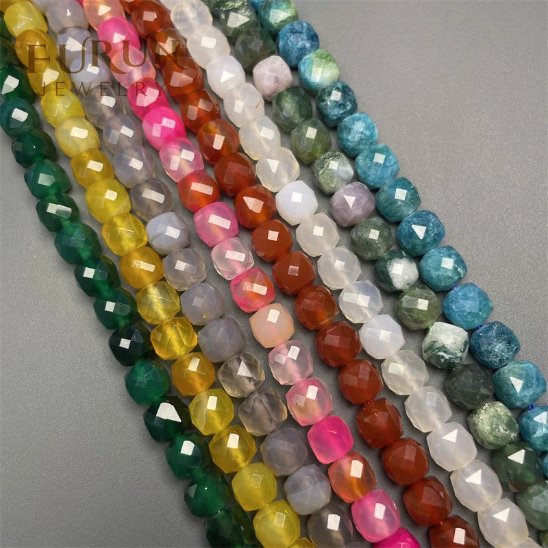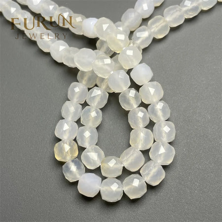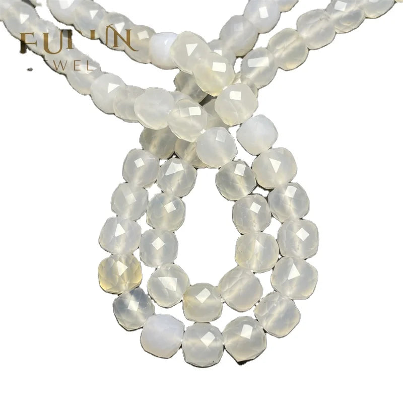 Natural White Agate Faceted Cube Bead 6 8 10mm Gemstone Cutting Face Polyhedron Square Box Bead for Jewelry Making Beads Supply
