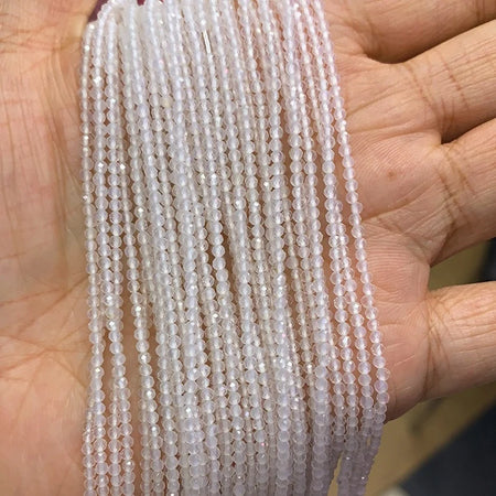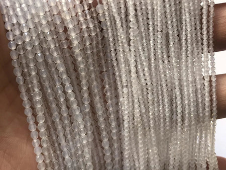 Natural White Agate Faceted Round Beads 2mm 3mm 4mm Small Stone Mini Ball Drilled Tiny Beads Sting Bead for Jewelry Making