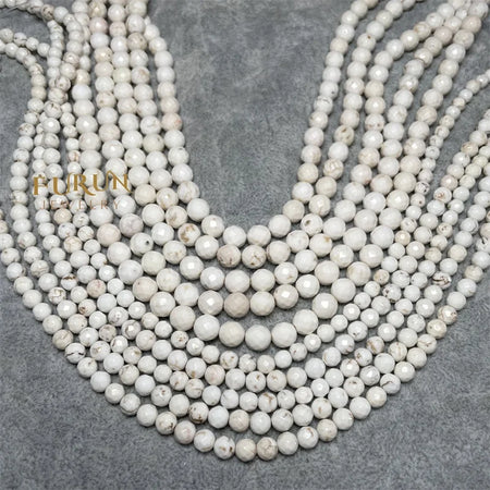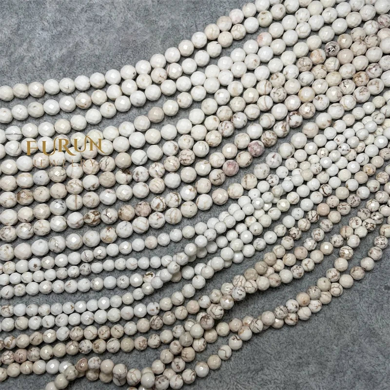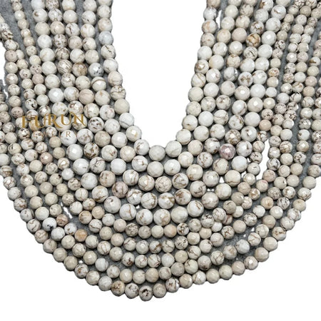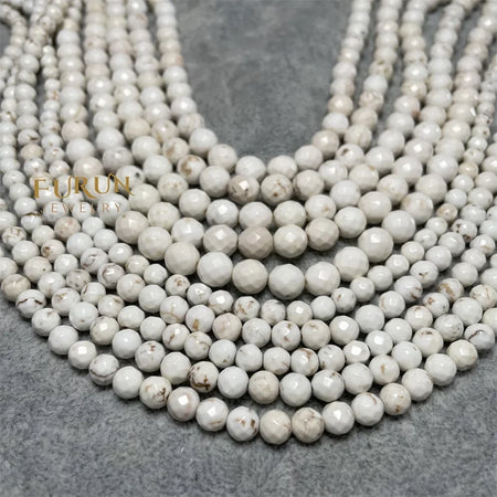 Natural White Magnesite Faceted Round Beads 6MM 8MM Gemstone Loose Beads for Jewelry making Beads Supplier