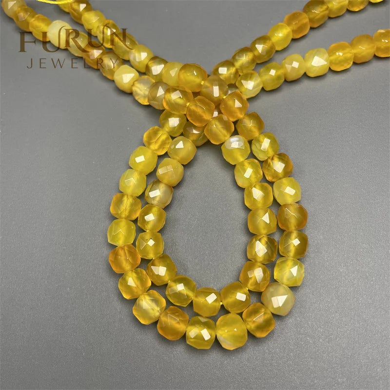 Natural yellow Agate Faceted Square Cube Bead 6 8 10mm Gemstone Cutting Face Polyhedron Box Beads for Jewelry Desgin Bead Supply