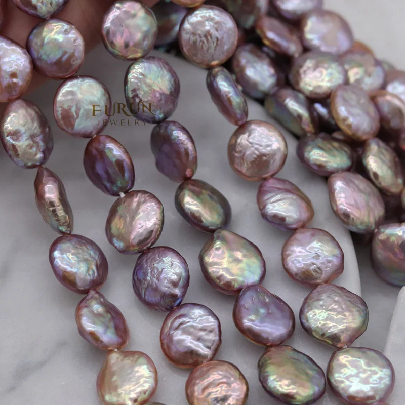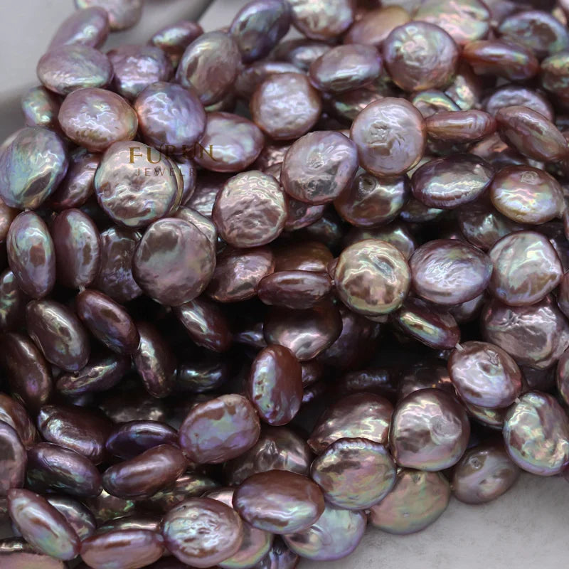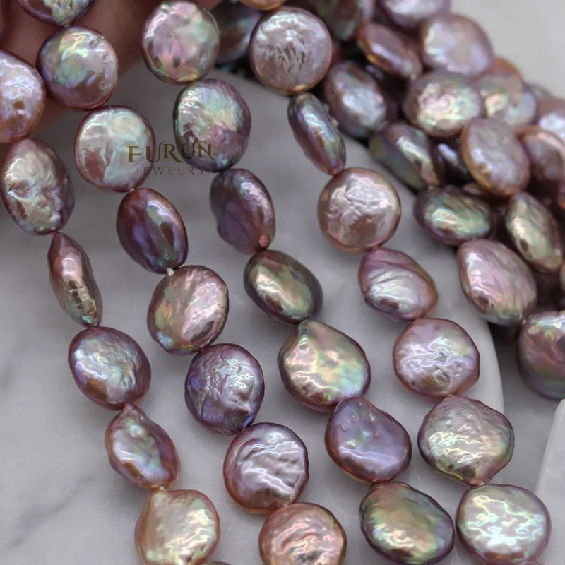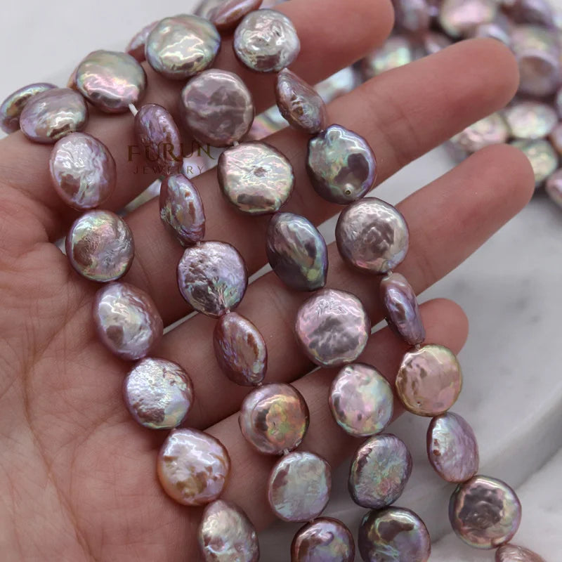 Purple Freshwater Baroque Pearl 12MM Flat Coin Round Disc Button Beads Drilled Loose Beads dazzling purple luster Special pearl