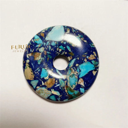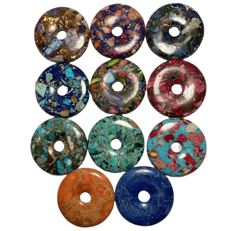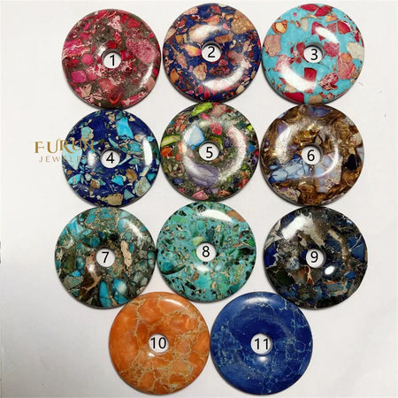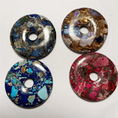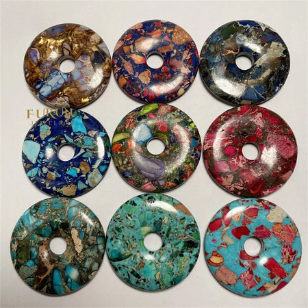 Sea Sediment Imperial Jasper Round Donut Impression Jasper Aqua Terra Jasper donut semi precious stonenecklace pendant 40mm50mm