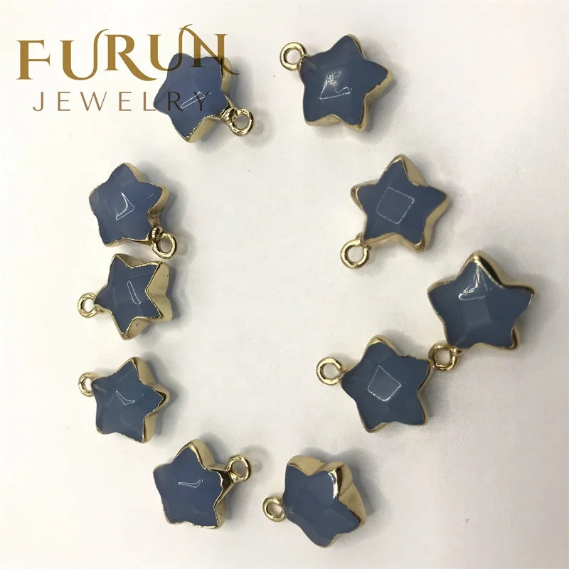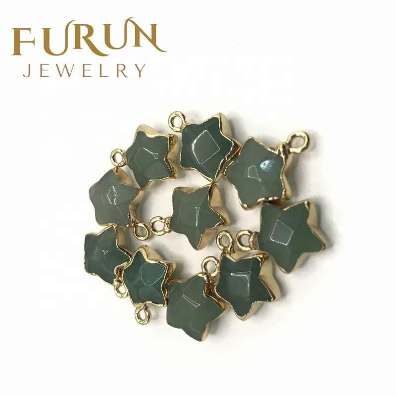 Star Shape Natural Stone Charms Agates Pentacle Star Gem Crystal Pendant
