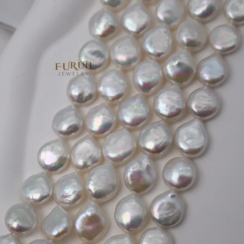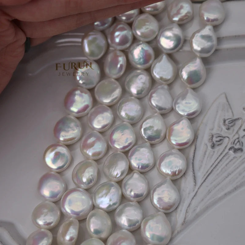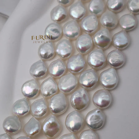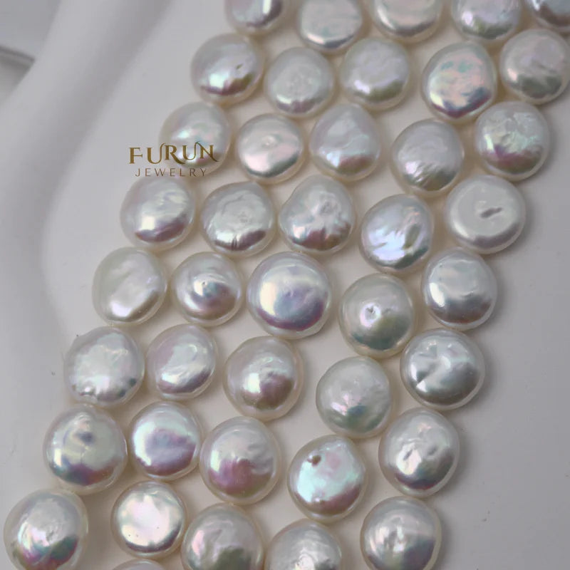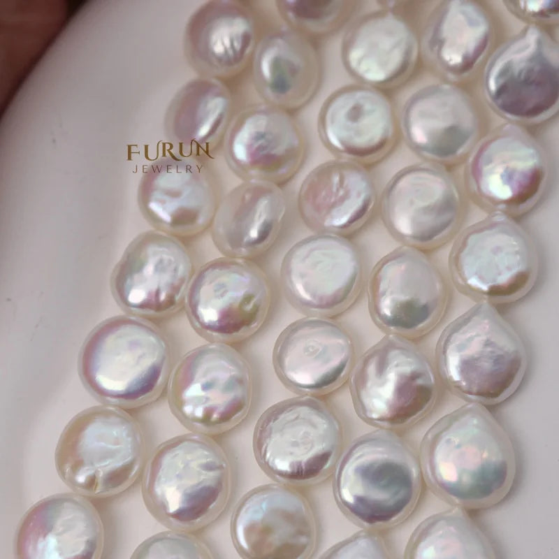 White Freshwater Baroque Pearl 12MM to 14MM Flat Coin Round Disc Button Drop Beads Drilled dazzling luster Special pearl