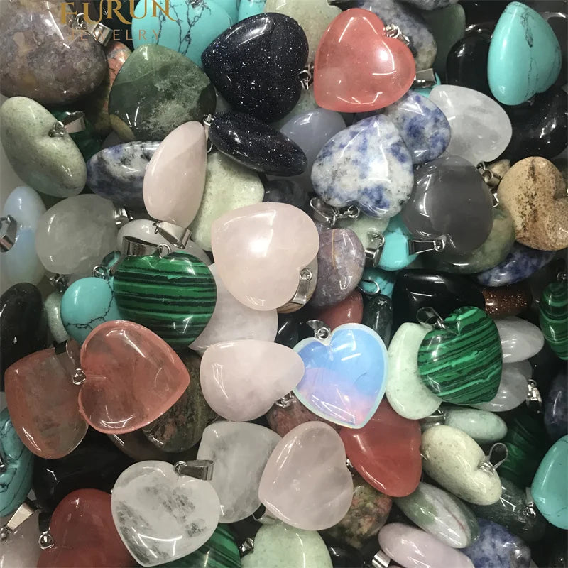 Wholesale 25mm gemstone pendant Natural Gemstone Rose Quartz Heart Shape Crystal Amethyst Hearts For Gifts Pendant