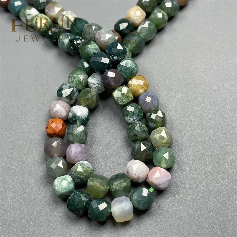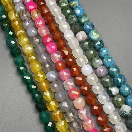 Wholesale Natural Indian Agate Faceted Square Cube beads 6mm 8mm 10mm Gemstone cutting face Polyhedron Cubic beads for Jewellery