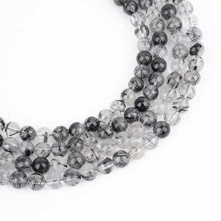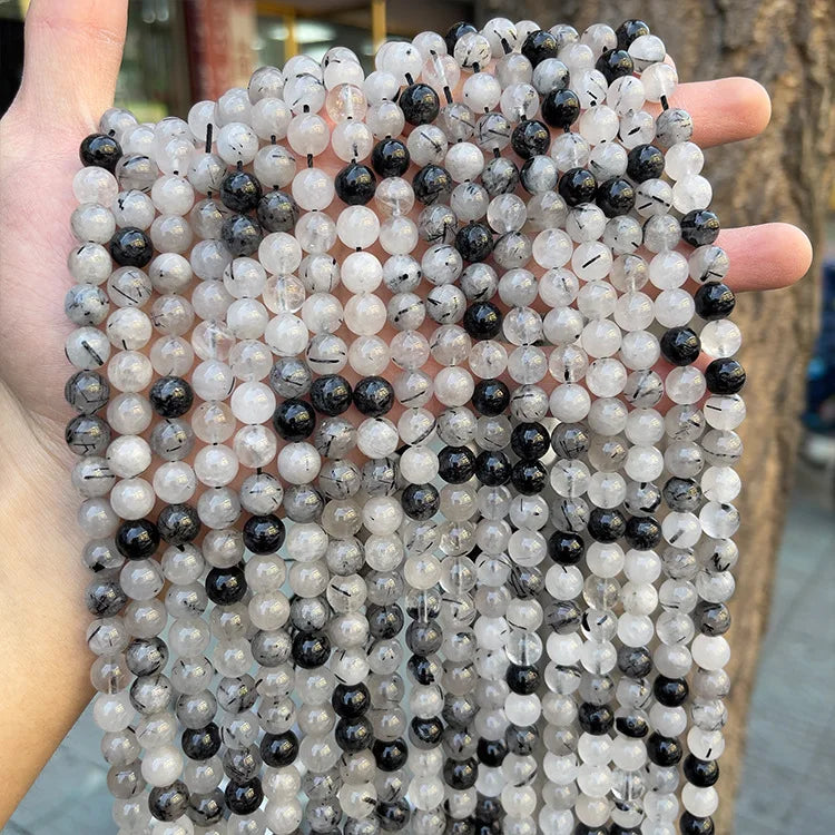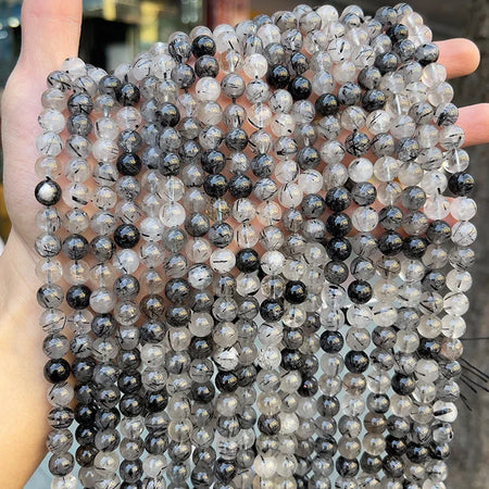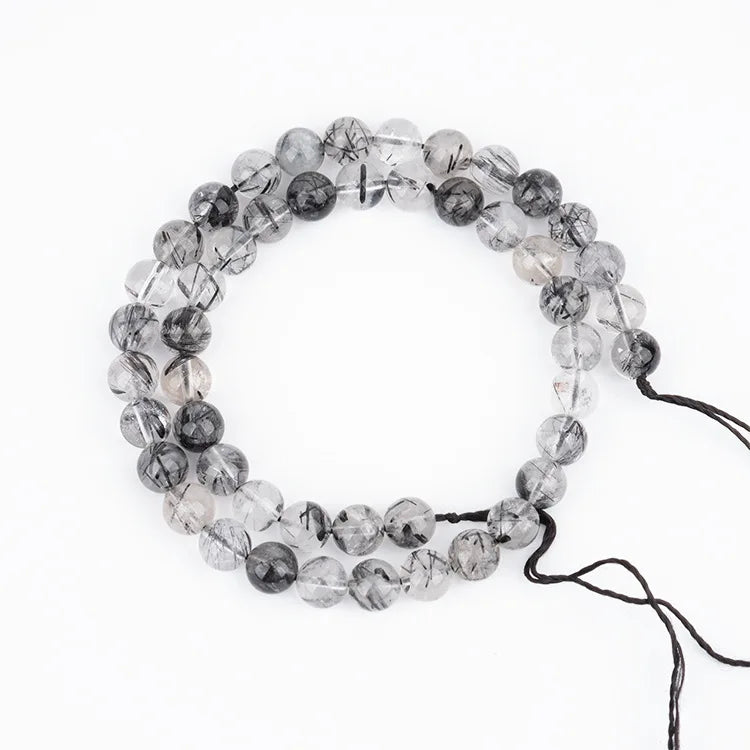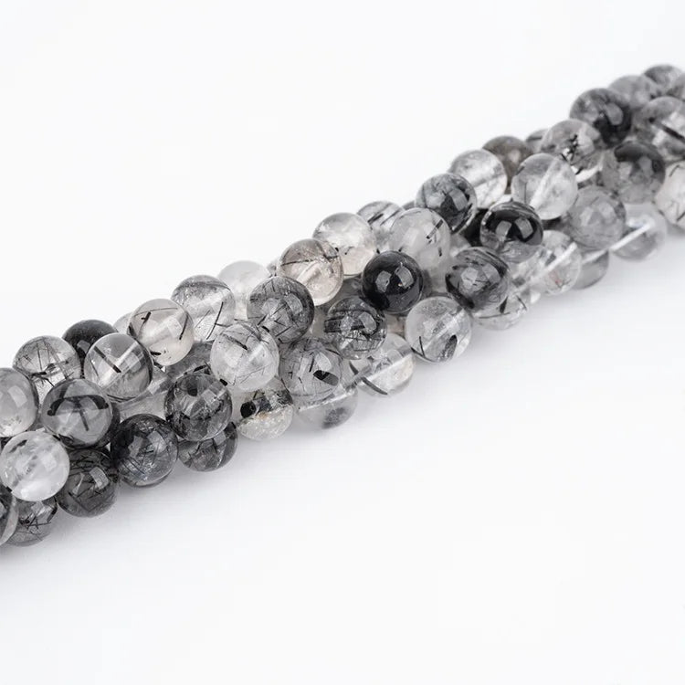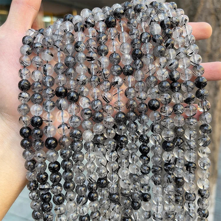 Wholesale Natural Smooth beads Gemstone Black Rutilated Quartz Stone Loose Beads For Jewelry Making