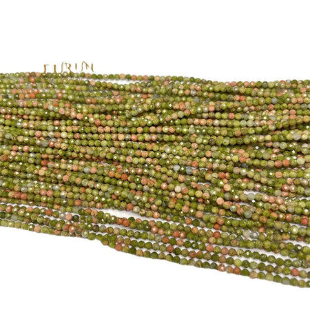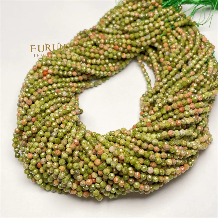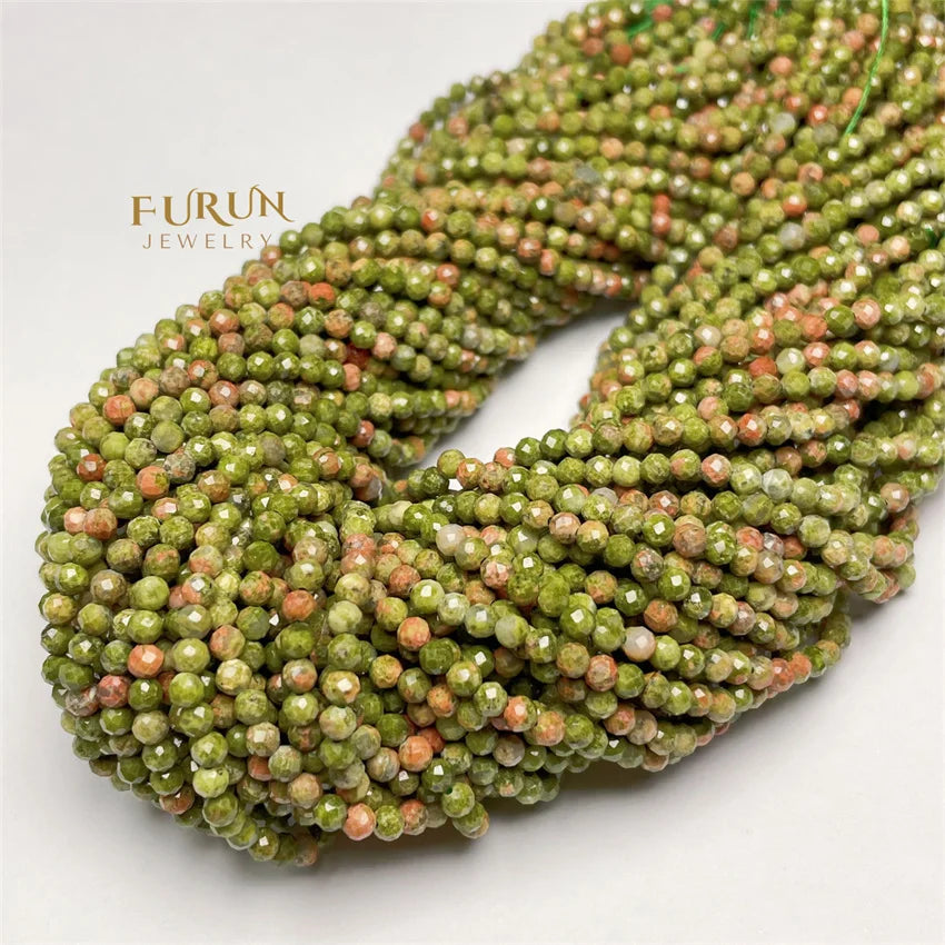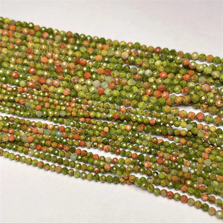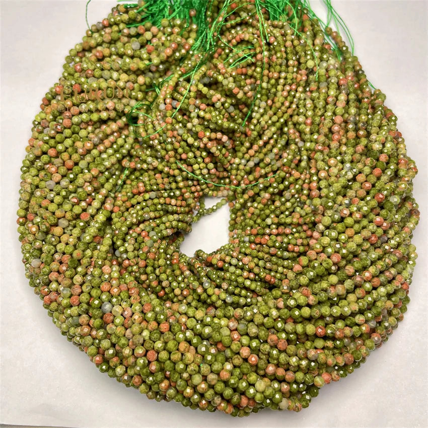 Wholesale Natural Unakite Faceted Round Beads 2mm 3mm 4mm Green Gemstone Small cutting Loose Beads for Jewelry making desgin