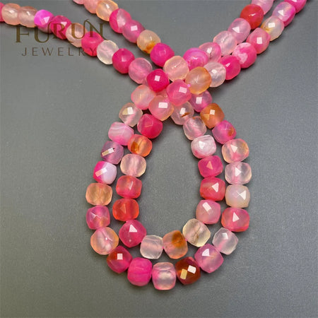 wholesale pink Agate Faceted Square Cube Bead 6mm 8mm 10mm Gemstone Cutting Face Polyhedron Box Beads for Jewelry Design Beads