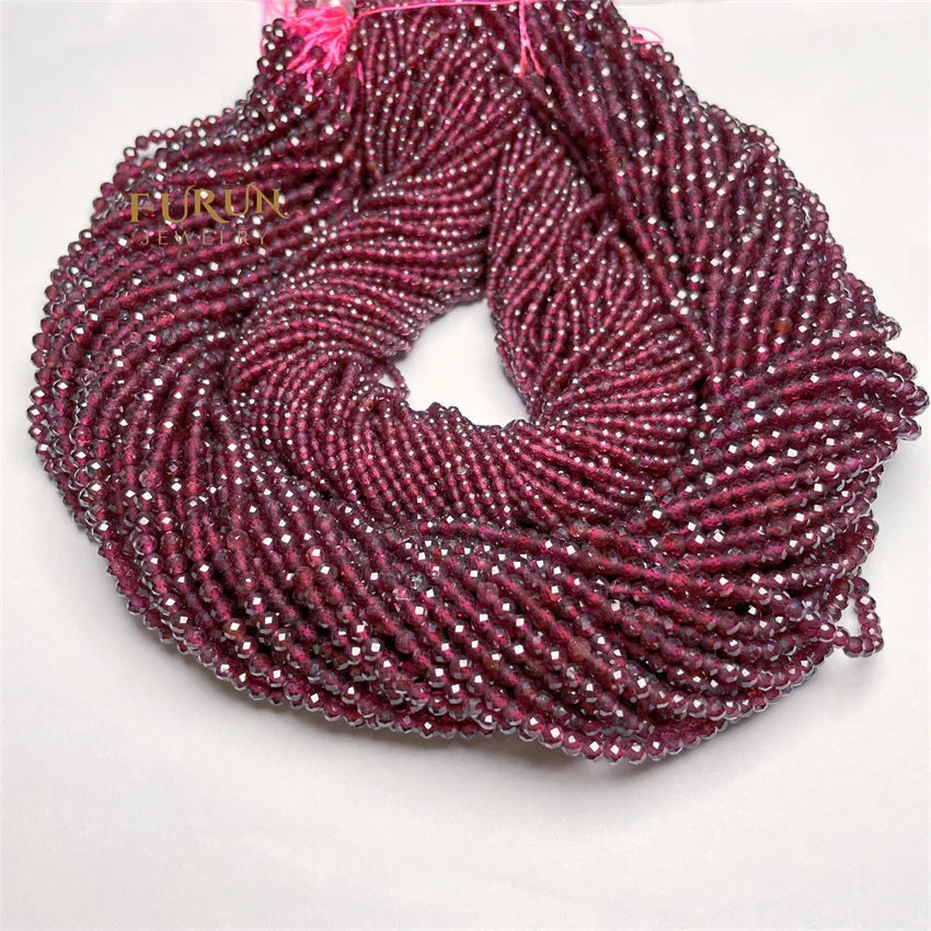 Wholesale Round Faceted Natural Garnet Stone Small Beads 2mm3mm4mm Wine Red Stone Loose Beads for necklace jewelry making desgin
